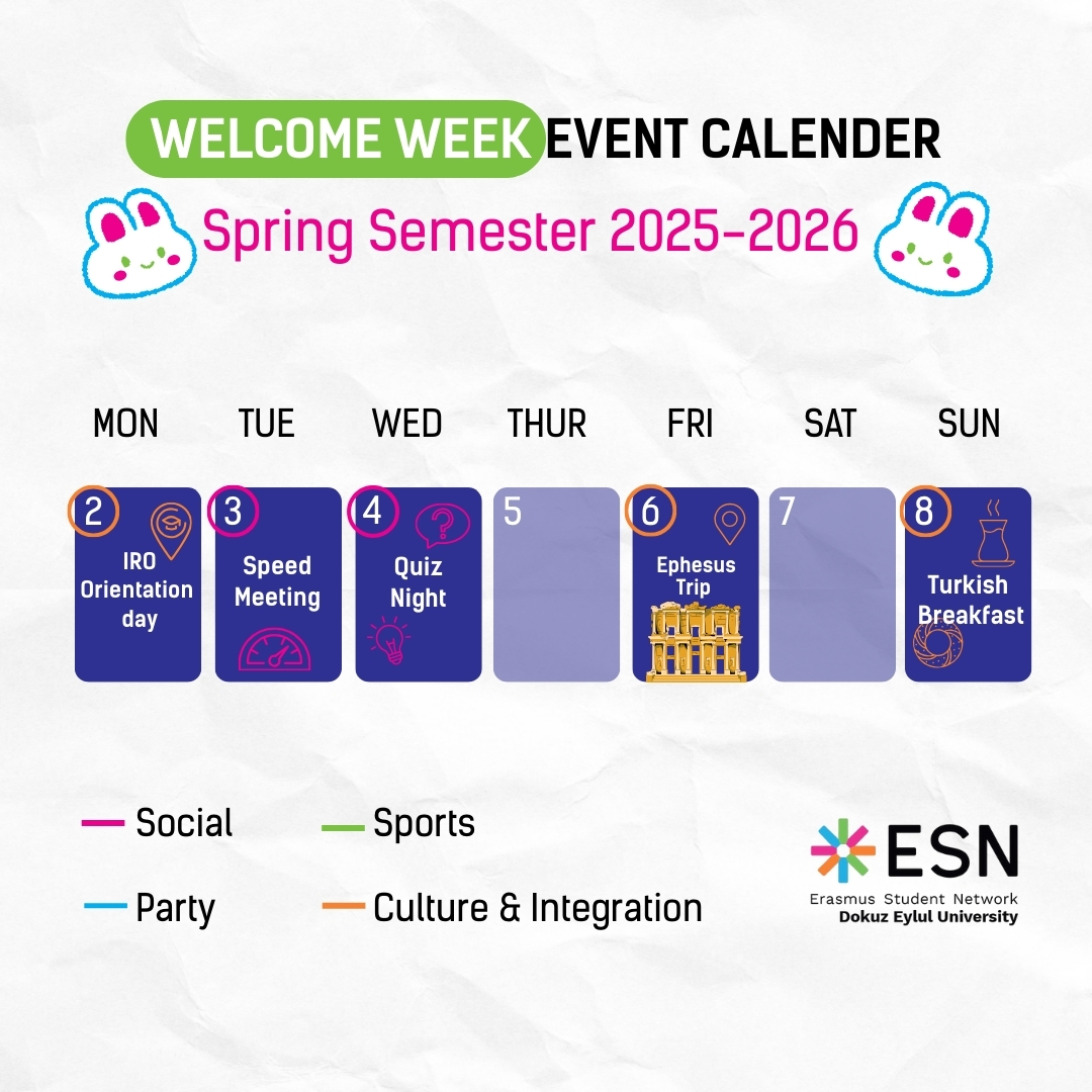 New semester, new city, new people — and we’ve prepared a full week of events to help you feel at home from day one. From orientation and speed meeting to quiz night, a cultural trip to Ephesus and a cozy Turkish breakfast — this week is all about connection, fun and integration.